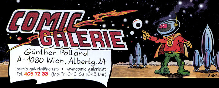 ![]() Sammlershop für: Comics . Antiquariat . Romane . Nachdrucke . Star Trek . Magic Star Wars . Warhammer . US-Comics . Simpsons . Mickey Maus . Digimon . Actionfiguren . Trading Cards . Pokemon . Dragonball . Sigurd . Spinne . Batman . X-Men . Superman . Preiskataloge Bei der Telefonnummer die Vorwahl 01- für Wien nicht vergessen! email: comic-galerie@aon.at www.comic-galerie.at |